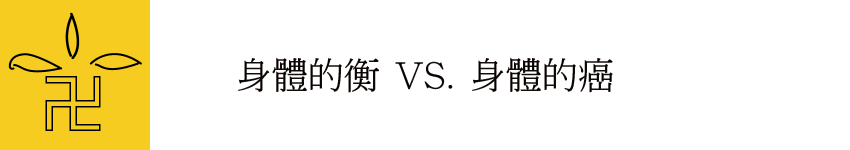 人的體是一個很精密的機器,每一個環節的運作都恰到好處,絕不容許任何差池。如果運作失當,便會產生疾病,最嚴重的就是癌症。所謂「運作失當」該如何解釋?醫療的說法都是以體弱或老化來解釋。今天我們提出另一種說法:就是人體運作失了「衡」。因為失衡,所以人體這一部機器產生故障,表現出來就是生病,所以才有癌症的產生。在認識與理解的過程中,大家難免會提出疑問:「衡」是如何運作的?到底是什麼「東西」掌握了「衡」的運作?